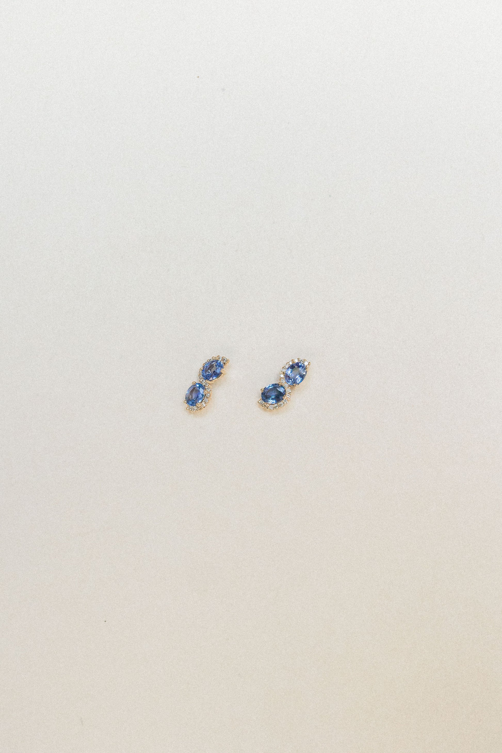 Diseñados con zafiros y diamantes en oro amarillo de 14k, son como el reflejo del sol en la superficie del mar.