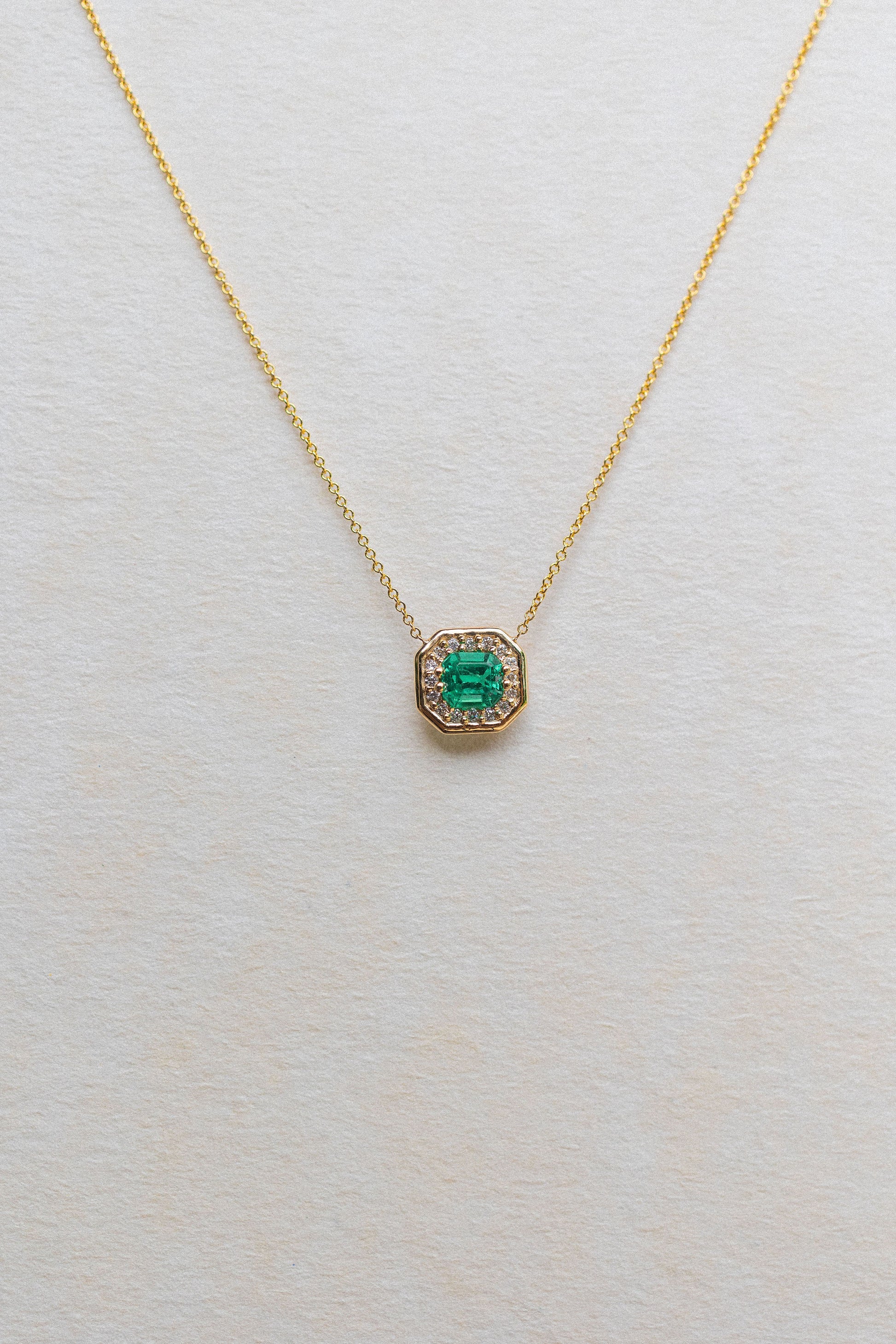 Una joya hecha con esmeralda, diamantes y oro amarillo de 14k que rinde homenaje al coraje y la protección, ideal para quienes llevan consigo la fuerza del mar.